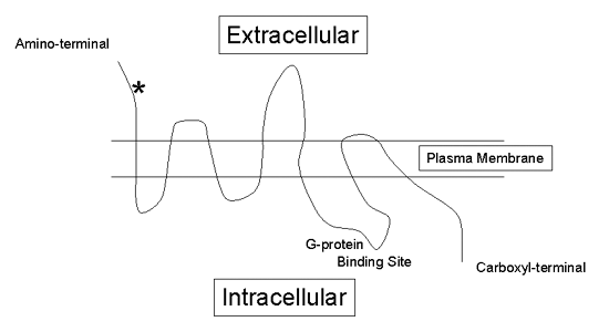 Glutamate receptors are responsible for most of the excitatory neurotransmission in the mammalian brain and spinal cord. There are two major types of glutamate receptors, the ionotropic and metabotropic receptors. The ionotropic receptors function as glutamate-gated ion channels, while the metabotropic class of glutamate receptors signal through intracellular G-proteins that bind to guanosine diphosphate (GDP) or guanosine triphosphate (GTP), which in turn, modify the activity of other receptors and ion channels. The expression of the glutamate receptors changes depending on the anatomical location and developmental age of the organism. These receptors contribute to such diverse phenomena as learning and memory, drug sensitivity and neuronal degenerative diseases. The purpose of this Cyberounds® is to provide a brief review on the general structure, function and anatomical distribution of ionotropic and metabotropic glutamate receptors. Ionotropic Glutamate ReceptorsThere are three types of ionotropic glutamate receptors: the closely related alpha-amino-3-hydroxy-5-methyl-4-isoxazolepropionic acid (AMPA) receptors, kainate receptors and the N-methyl-D-aspartic acid (NMDA) receptors. These receptors mediate rapid excitatory neurotransmission in such brain regions as the hippocampus and cortex. They are classified as ionotropic because they are ligand-gated channels (i.e., the channel gate is opened or closed by its ligand glutamate) that allow ions to travel into the neuron (Figure 1A). Figure 1A. A Schematic of a Glutamate-Gated Ionotropic Glutamate Receptor. ![]() Although each ionotropic glutamate receptor has its own particular structure and function (discussed below), they do share a number of common characteristics. For instance, each of these receptors is composed of multiple subunits (four or five) that have four membrane domains (Figure 1B), three of which traverse the plasma membrane (e.g., M1, M3 and M4) and one re-entrant loop (e.g., M2).(1) Figure 1B. Schematic of the Three Transmembrane Domains (M1, M3 and M4) and the Single Re-Entrant Loop (M2) of an Ionotropic Glutamate Receptor Subunit. ![]() The "*" indicates glutamate binding sites. Furthermore, the extracellular amino-terminal domain of these receptors contains the glutamate binding site, while the intracellular carboxyl terminal of these receptors mediates various functions such as receptor phosphorylation, signal transduction and interactions with intracellular scaffolding and anchoring proteins. Of the three ionotropic glutamate receptors, the AMPA and NMDA receptors are the most well studied, but recent advances in more selective pharmacological ligands for kainate receptors will undoubtedly begin to elucidate a more exact pharmacology of this ionotropic glutamate receptor subtype.(2) AMPA ReceptorsThe AMPA receptors are composed of four subunits: GluR1, GluR2, GluR3 and GluR4 (also known as GluRA-D). However, each subunit may not be represented in a single receptor such that an AMPA receptor may be comprised of two GluR2 and two GluR3 subunits, for instance. The AMPA receptors can allow Na+, K+ and Ca++ to pass. However, they primarily conduct Na+ and K+ ions. The conductance of the receptor will depend on which subunits compose the receptor. For example, AMPA receptors that contain the GluR2 subunit are impermeable to Ca++.(3) Binding studies have shown that the AMPA receptors are highly enriched in the hippocampus and cerebral cortex.(4) However, lower levels of AMPA expression are also found in the diencephalon, midbrain and brainstem.(4) The expression levels of the subunits also change depending on anatomical location. Specifically, the GluR1, GluR2 and GluR3 subunits are highly expressed in the hippocampus, while the GluR4 subunit is abundantly expressed in the granule cells of the cerebellum.(5) AMPA receptors can interact with intracellular proteins, as the cytoplasmic tails of the receptor subunits have one or more intracellular protein-protein interaction motifs known as PDZ domains. Receptors that contain GluR2 and GluR3 subunits can bind to and interact with the intracellular adaptor protein GRIP (glutamate receptor-interacting protein). GRIP appears to be responsible for targeting and aggregating AMPA receptors at excitatory synapses.(6) Conversely, AMPA receptors with GluR1 subunits bind to and interact with SAP97 (synapse-associated protein 97), which may allow the AMPA receptors to interact with other glutamate receptors (e.g., NMDA receptors).(7) Other adaptor proteins have been identified [e.g., RIL (reversion-induced LIM gene), PICK1 (protein interacting with C-kinase)] that mediate AMPA receptor trafficking, linkage with the cytoskeleton and intracellular signaling.(8) Thus, in addition to the different ion permeabilities imposed by the subunit composition, the PDZ domains on their cytoplasmic tails can further affect the physiological properties of these receptors. AMPA receptors cycle into and out of the plasma membrane through endo- and exocytosis and maintain a steady-state distribution on the surface of the membrane. However, upon stimulation, the AMPA receptors become more dynamic and can be either recruited to or away from the synapse. This active trafficking of the AMPA receptor is thought to mediate certain aspects of synaptic plasticity.(8) For example, AMPA receptors in the hippocampus have been shown to play a fundamental role in long-term potentiation (LTP) and long-term depression (LTD), putative electrophysiological correlates of learning and memory. During LTP, AMPA receptors are recruited to the surface of dendritic spines, which are postsynaptic specializations that receive excitatory transmission.(9) On the other hand, AMPA receptors undergo endocytosis during LTD, which would make the receptor physically unavailable to bind glutamate on the cell surface leading to a reduction in the signaling capacity of the cell.(10),(11) Taken together, these studies highlight the importa